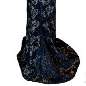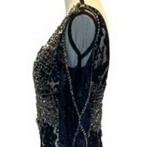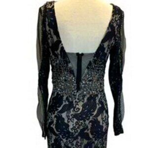 Lara Black Lace Blue Nude Beaded Embellished Long Sheer Sleeve Gown