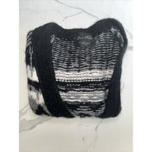 Lara Knit Cardigan Sweater Sz M Black Open Front Knit Mohair Blend Made in Italy