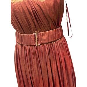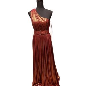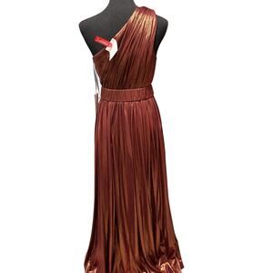 Lara NWT One Shoulder Metallic Dress 4 Brown Stretchy Wedding Formal Gala Maxi