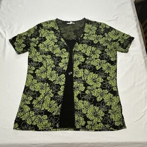 Lara Women's Fashion Green & Black Blouse Size 1x Diamond Details