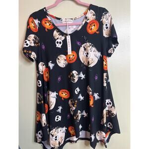 Larace Skull Halloween Short Sleeve Loose Fit Flare Swing Tunic Size: small