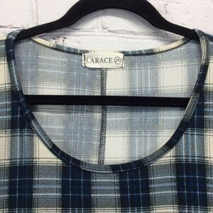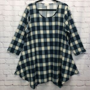 Larace Tunic Top Women's Plus Size 2x Blue Plaid Shark Bite Hem Pullover Stretch