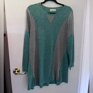 Larace Womens long sleeve tunic green gray size 2X cozy relaxed color block