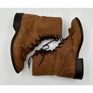 Laredo Boots Kiltie Fringe Womens 7M Lace-Up Roper Brown Leather USA Made