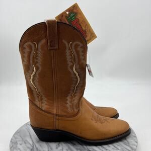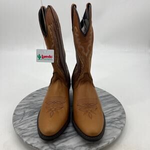 Laredo Boots Womens 8 Walnut Deertan Leather Vamp Stitched Western Cowboy Ladies
