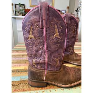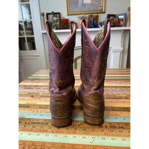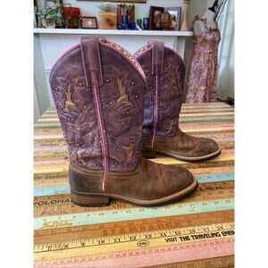 Laredo Cowboy Boots Women 6.5M Brown Leather Western Embroidery Purple Boho