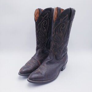 Laredo Men's Cowboy Boots Brown Leather Pointed Toe Embroidered Size 11
