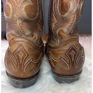 Laredo Mens Leather Cowboy Boots Tan Western Stitching Size 10EE