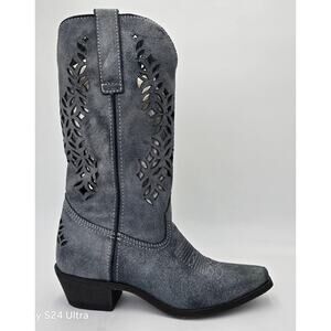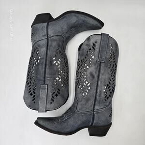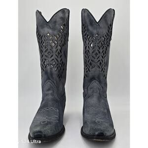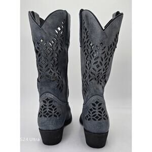 Laredo Western Leather Boots Sanded Blue Snip Toe Cutout Cowgirl Women's 10M
