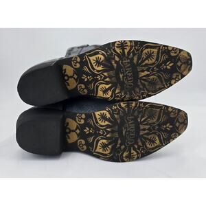 Features: Distressed leather upper with intricate cutouts; Lightly cushioned; Snip toe; Pull up tabs; Embroidered