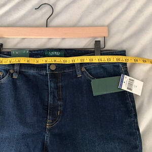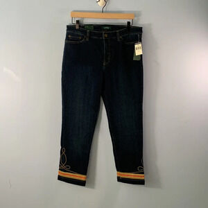 Laren Ralph Lauren gold red embroidered soutache cuff medium wash jeans size 12