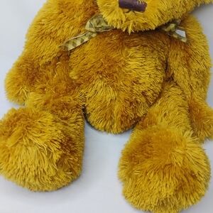 Large 14" Tall Vintage Classic Teddy Bear Plush Very Soft, Fluffy, Fuzzy, Cuddly / Snuggly Stuffed Animal Yellow'ish Light Brown Bear with a Plaid / Argyle Pattern Bow Tie.