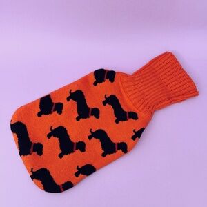 Large 2 Liter Hot Water Bottle w/Knit Cover (Orange, Black Dachshunds)