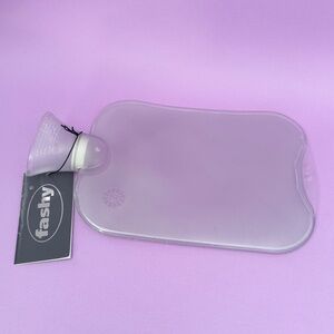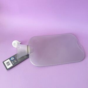 One large 2 Liter Transparent Classic Hot Water Bottle (Fashy brand) with Knit Cover. Cover is orange w/black dachshunds.