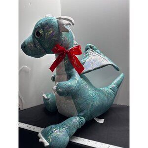 Large 20-Inch Blue Dragon Metallic Plush Toy With Red Ribbon By Walmart