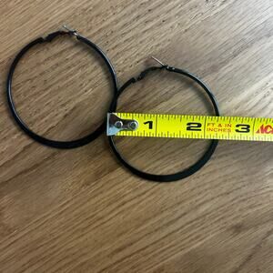 Large 2.5 in round Black painted Costume Hoop earrings Goth party Cocktail glam