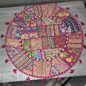 Large 30” Floor Cushion Cover Throw Pillow Patchwork Indian Bohemian Round Pink