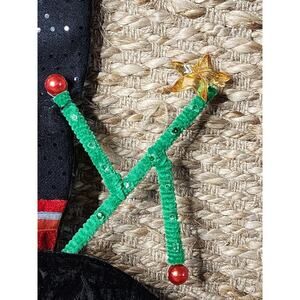 The product is a large 3D reindeer Christmas stocking, featuring multicolor sequins and eyelashes for added decoration. Made from a combination of polyester, cotton, and acrylic materials, this holiday stocking is 22 inches in height and 15.5 inches in width. Designed by the brand GANZ, this stocking is perfect for adding a festive touch to your Christmas decor with its charming reindeer character and holiday-themed design.