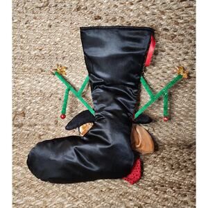 Large 3D Reindeer Christmas Stocking Lined Holiday Decor Eyelashes Sequin 22"