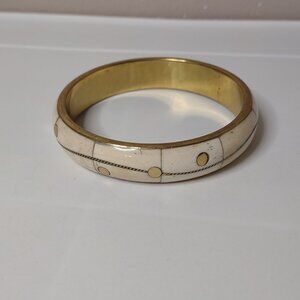 Large 9 Inch Cream And Gold Tone Vintage Bangle