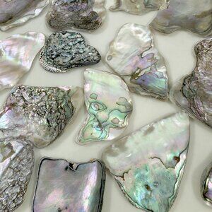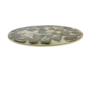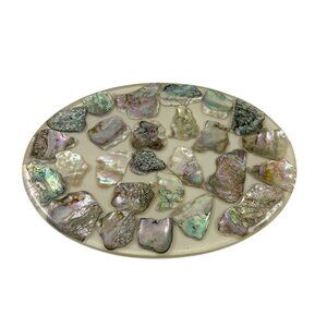 Abalone shell pieces embedded in a thick layer of lucite or resin