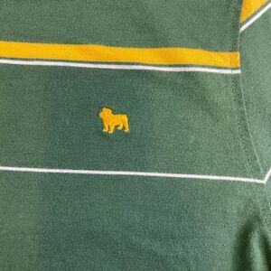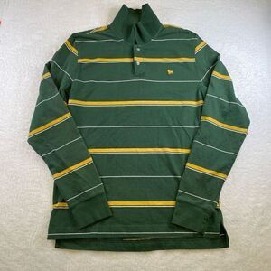 Large Aeropostale Slim Fit Green Polo Long Sleeve Yellow Striped