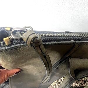 Large Allsaints Co LTD Leather tote Bag Olive with Sequin Panel 2 handles zip
