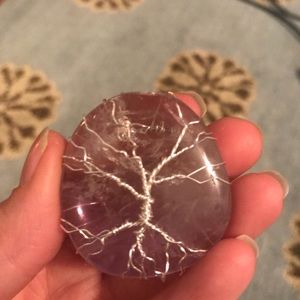 Handmade wire wrapped tree of life polished oval amethyst pendant.
