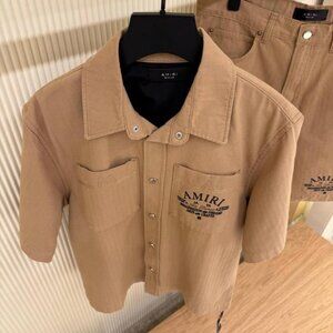 Large Amiri Denim Men's Brown Shirt And Short Set Comfort Fit