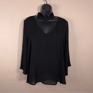Large Ana Black Collar Style Blouse Flowy Chiffon 3/4 Sleeve Goth