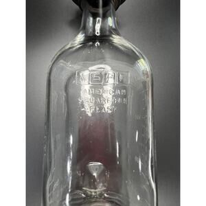 Antique medical glass IV bottle. Made for the American Sterilizer Company from the 1920’s to 1950’s. This unique Pyrex bottle features milliliter measurements readable right side up and upside down. Classically Americana!!!!! This great vintage Pyrex intavenous bottle is squarish in shape, with volume measurement markings on two sides, as well as divots molded in the glass so it could be hung from the IV stand. Marked American Square-Pak Flask on one side, ASPF on the other, and on the bottom it says: Pyrex Made in USA for American Sterilizer Company Erie, PA USA.Bottle is 11.5” high, and 3 1/4” wide on all four sides. Excellent vintage condition, no cracks.Original black lid included. Thank you for looking at this great Antique medical IV bottle.
