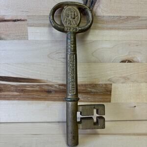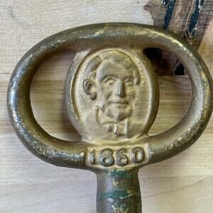 Antique looking key George Washington and Abraham Lincoln Most likely iron Heavy 8 inches long