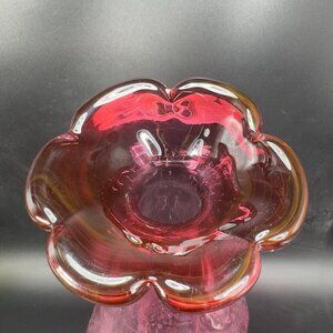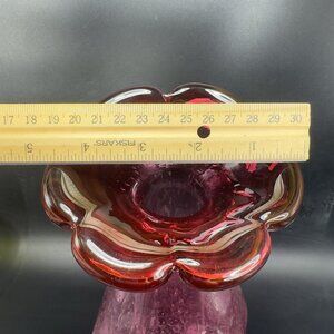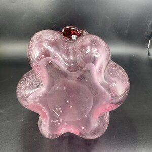 Large Art Glass Vase Vessel Pink Flower Shape Vas With Air Bubbles All Over Vase