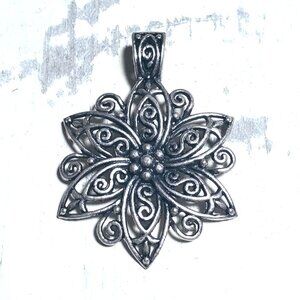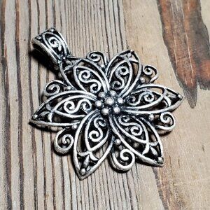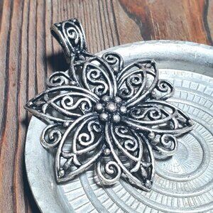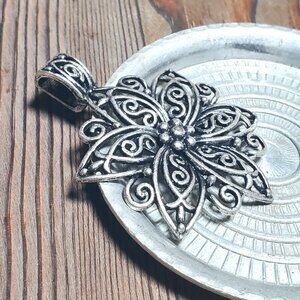 Large Art Nouveau Filigree Flower Antiqued Silver Plated Artsy Pendant with Bail