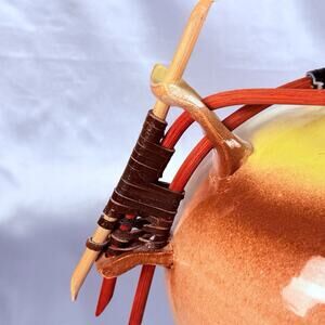 Bring bold color and handcrafted character to your space with this striking ceramic decorative vase. This large vessel features a smooth yellow-to-orange gradient glaze and unique mixed-material handles wrapped in wood and leather, giving it a warm rustic/Southwest-inspired look. A statement piece for entryways, shelves, fireplace mantels, or artistic studio displays.