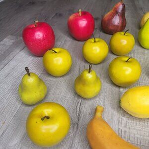 This collection of artificial fruits brings a touch of nature's bounty into any setting. The assortment includes lifelike apples, pears, lemons, and grapes, meticulously crafted to resemble their real counterparts. Whether you are decorating for a special event, enhancing your kitchen aesthetics, or adding a vibrant touch to your office decor, these artificial fruits offer an enduring and maintenance-free solution. Their realistic appearance ensures that they remain a captivating centerpiece or complement to any interior space.