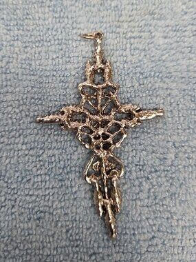 Auth Zuni Cross Pendant Chain Sterling Silver Turquoise Needlepoint
