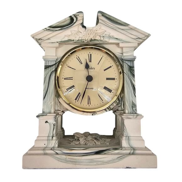 Large Aynsley Est 1775 Portlandware Green And Cream Marble Effect Mantel Clock