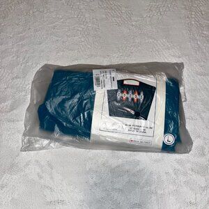 Large Ball & Chain turquoise colored tote bag from iconic Japanese brand, Sold Out design. Adjustable straps, can cinch bag closed or adjust to one long strap for wearing as a cross-body bag. Embroidered. Great for groceries or a carry-all, large enough for use as an overnight bag.