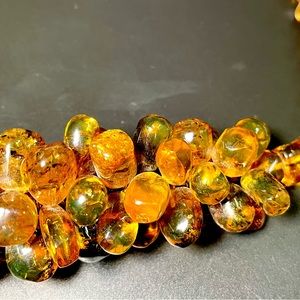 Large Baltic honey Amber cluster necklace with sterling silver clasp 24" in length. Largest statement necklace weighs 91 grams. Couumposed of clusters of honey Amber nuggets with dozens of insect inclusions.