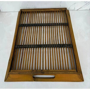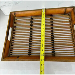 Large Bamboo Rattan Tray Sturdy Heavy Duty Handcrafted with Handles Matte Brown