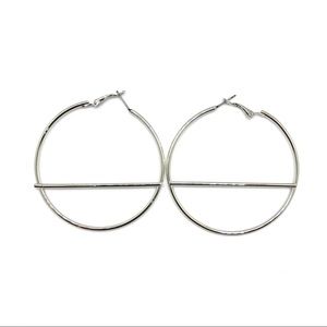 Large Bar Hoop Earrings, Silver Finish, 90s Style
