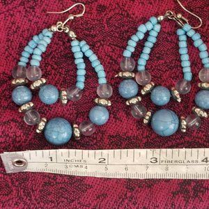 Earrings Large Beaded Tear Drop Shape Double Hoop Blue