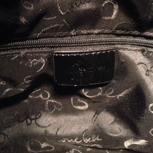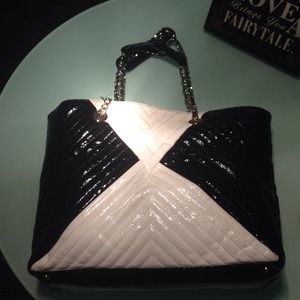 This is a large, patent leather tote from Bebe. It is in great condition and even has the original charms hanging from the handle!
