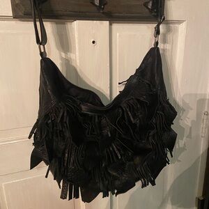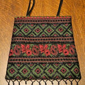 Large Beige and Black Shoulder Bag with Green and Red Stripe