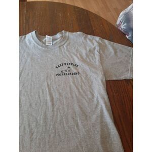 Large Biker Tee T-Shirt Top Reloading Keep Honking Grey Short Sleeve Crew Neck