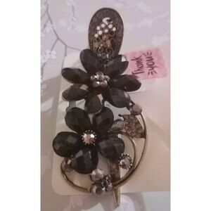 Beautiful women's ornate black flowers hair clip, 4 1/2" X 1 3/4". Rhinestone adorned. Beautiful! NWT