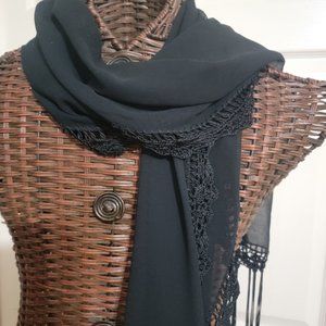 Large Black Shear Dress Scarf with Crotched Edges and Fringe