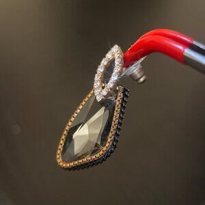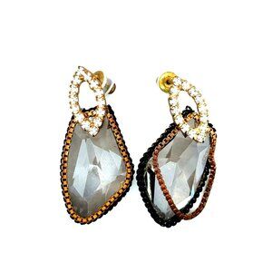 Large Black Stone Chain Crystals Earrings Preowned This piece is lovely No backings Posts are signed 925