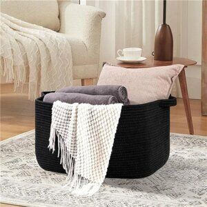Large Black Woven Blanket Basket Cotton Rope Storage Bin for Toys Towels Laundry